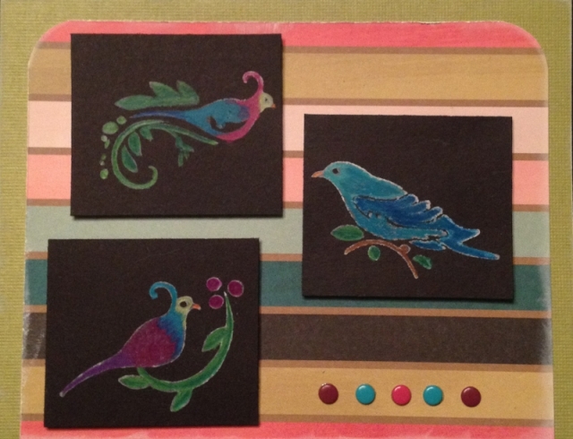 I've had these bird stamps forever but haven't really known what to do with them. I think this technique worked really well.