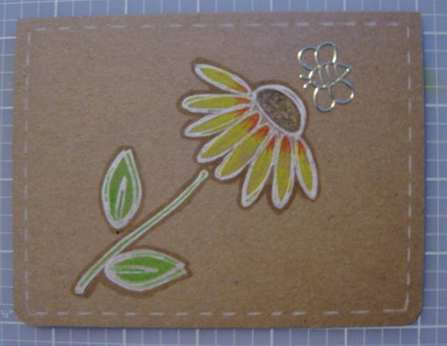 I left the bottom right corner for a sentiment. I may use the shadow technique on that also when I decide what to use it for. It still needed something so I put a gold sticker bee above the flower.