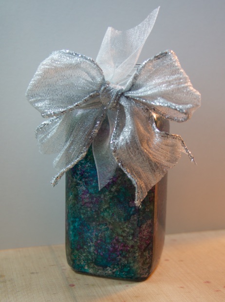 This is another jar I made---but instead of stamping to add to it, I worked on trying to create a bow with wired ribbon.