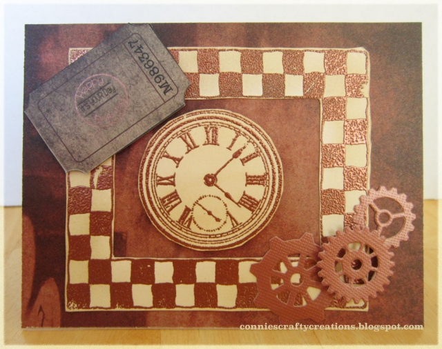 Deep Red -- Roman clock stamp, embossed with copper embossing powder