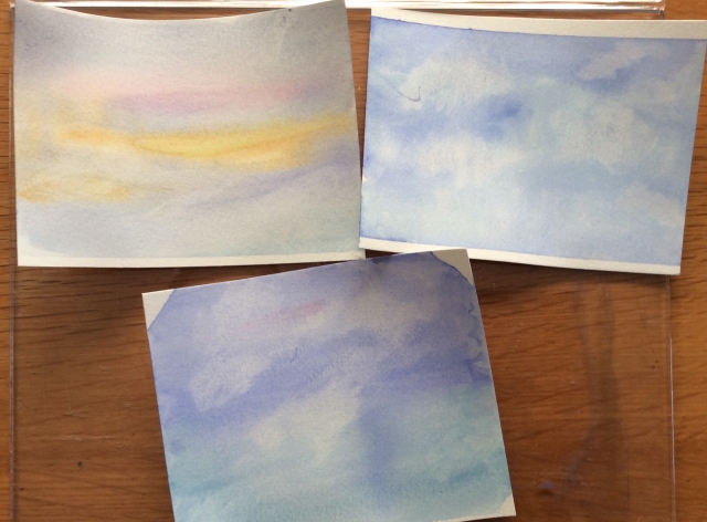 I made three backgrounds with my Koi pan watercolors. I definitely need more practice!
