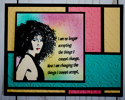 I love the quote and image. The color blocked and embossed background is perfect. TFS. Daria
