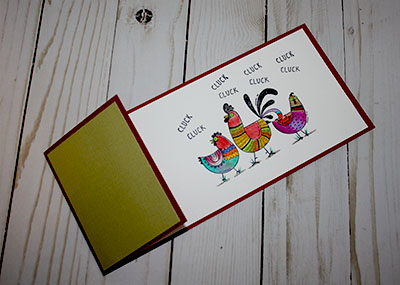 I stamped the open area with quirky chickens.