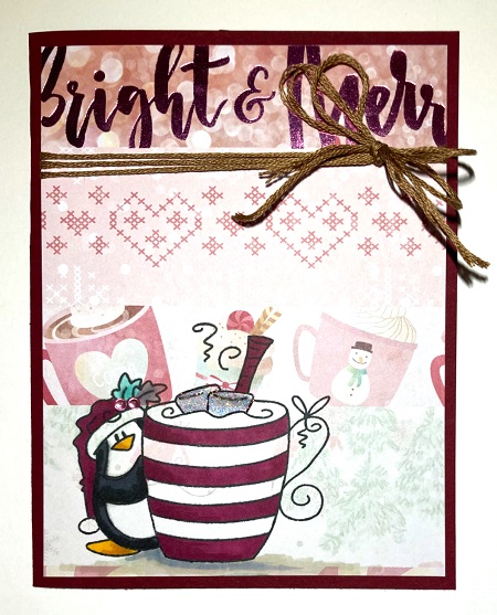 I used Prima paper again. I stamped directly onto the patterned paper and colored with Spectrum Noir alcohol markers. The image is by Stampalicious.