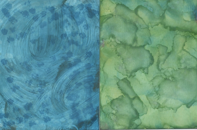 I hope one of these qualifies as an agate background. One is using two shades of blue with some pearl and gold mixative and then the blending solution. The 2nd one was using blue, green, and yellow with white mixative.