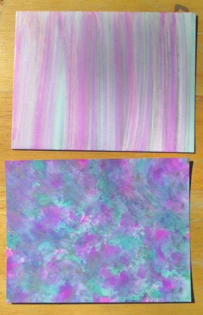 The striped piece is on comic book board and the other piece is one glossy card stock. For the other piece, I used a half circular motion.