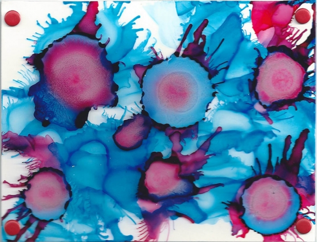 Alcohol inks 4B-Straw Blowing-Blue and Red