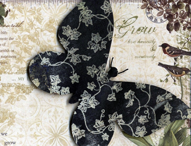Hello! Laughing What can I say, Ann? If you butterfly insists on hanging out in a pile of charcoal, what can you do? You could rename the piece 'Luna Moth in a Lunar Eclipse'. Wink But...not being able to 'see' the PP isn't a deal-breaker. What is great is you did your durndest & shared it with us, pal. I really like the layout of this project & my favorite touch is the "we grow" on the lower left corner. Says it all! Wink