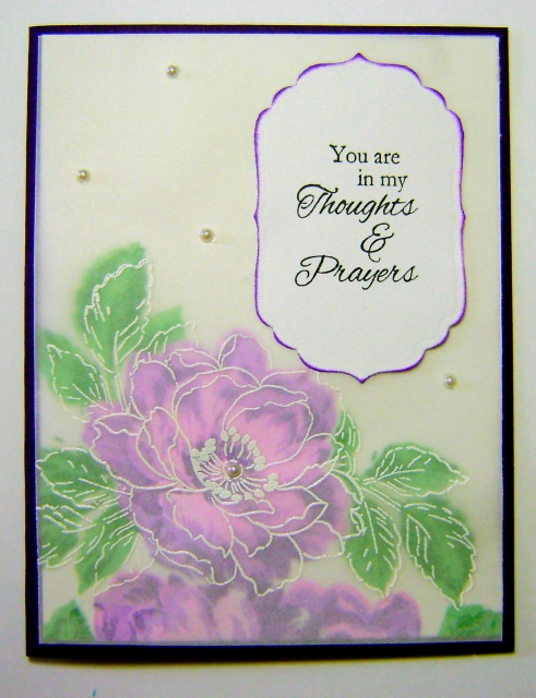 Beautiful! I like the embossed vellum too, and the purple inking on your sentiment piece.