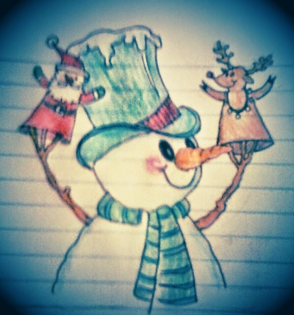 And Santa said to the reindeer, Merry Christmas! How about that for your wording. Cute snowman, I like the snow on his hat, too.