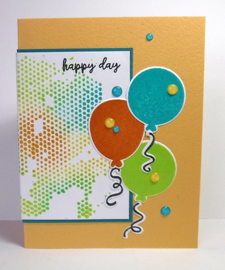 I used one of my stenciled pieces from Jan's challenge to use on this card. The balloons are stamps that have dies to cut them out. the stamps are by Pink & Main. Thanks for the fun challenge!