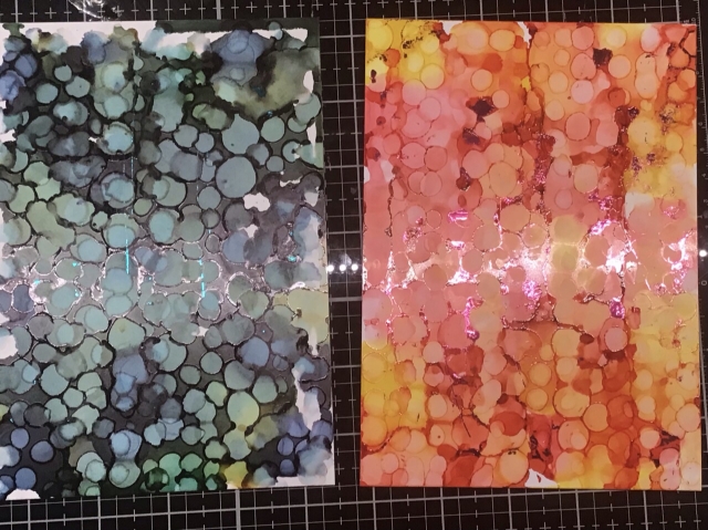 I haven’t made a card yet but want to go ahead and load my backgrounds. I couldn’t get much foil to stick to the left one. It was my second one but it seemed t dry fast.