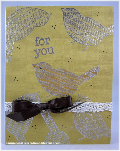 Darcie's - Garden Bird, embossed w/silver embossing powder, center one colored with marker