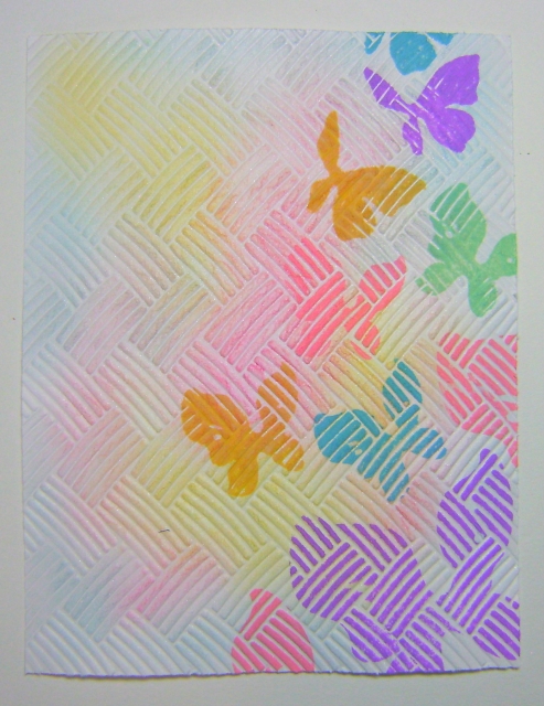 I love the positioning of the butterflies and the pattern the embossing created. TFS. Daria