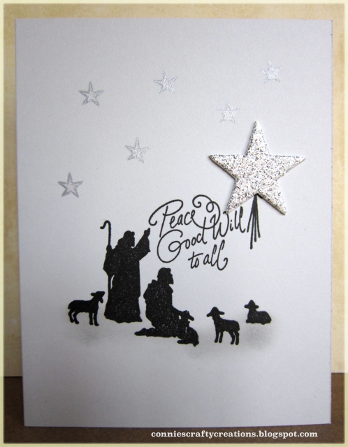 What a wonderful image! I love silhouette images, and this one looks wonderful sstamped against the white. I'm glad you kept the card CAS with just the silver stars for embellishments. Lovely. TFS. Daria