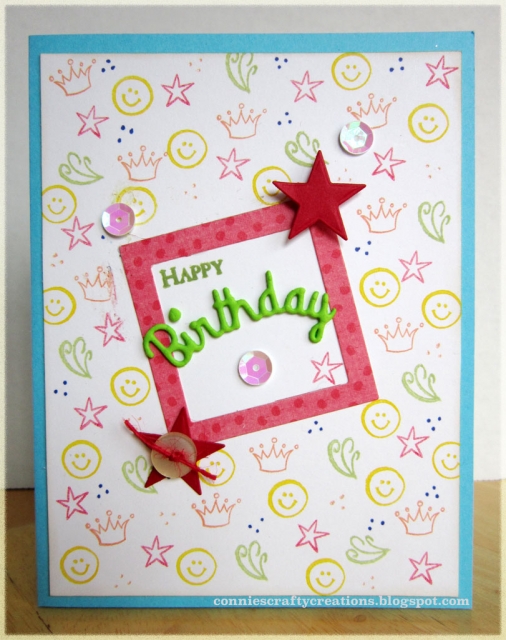 This is very cute and joyful. the design with the stamps in the background is wonderful. TFS