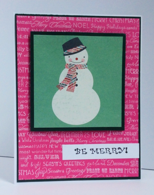 Ooh, I like this one too! Such a cute snowman. I like the bright colors. Your background matches his scarf really well.