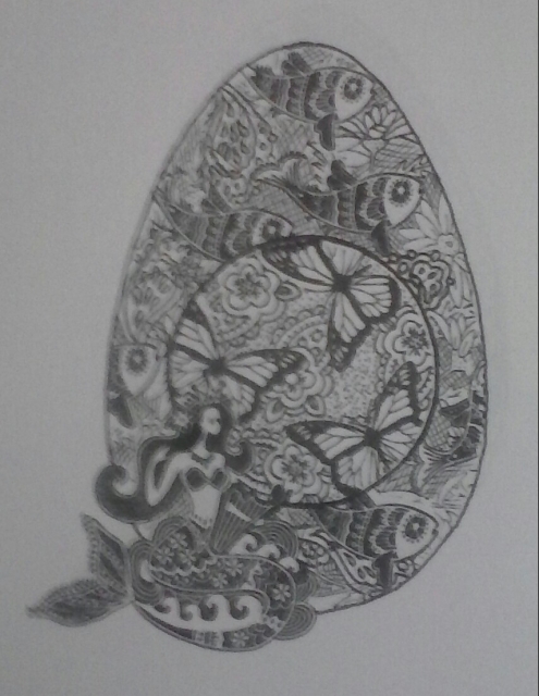 I did a good bit of masking for this--regular & mortise. Also added some pen work dots & lines to fill in blank areas. Sometimes I like doing 'busy' pieces.