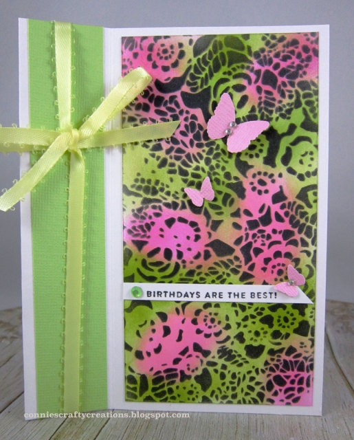 This card turned out so well! I love this stencil with the bright pretty colors.