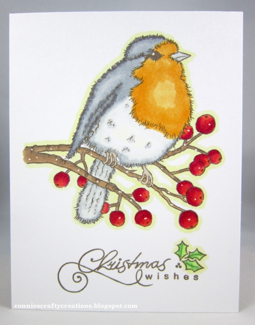 Woodware stamps - Fluffy Robin, colored w/markers, Image and sentiment