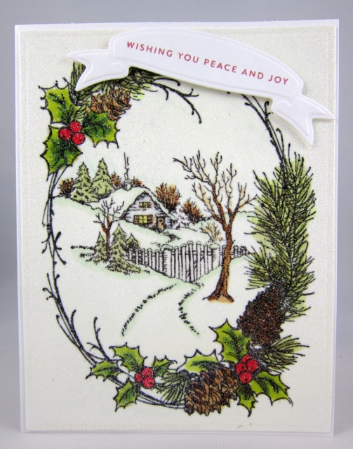 Stampendous - Christmas cottage stamp, colored w/markers then added