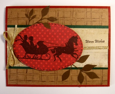 Here is my first Christmas in July card. The image is from Sparkle N Sprinkle and the saying is from Just For Fun Stamps. The image was stamped on patterned paper and cut out using the Gina Marie stitched oval circle die. The leaves were cut from a Memory Box die. The background stamp is also from Sparkle N Sprinkle.