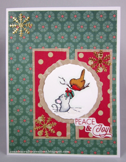 Another cute one. I like these papers too. That is a creative layout with the two panels behind your circle focal image. Great card.