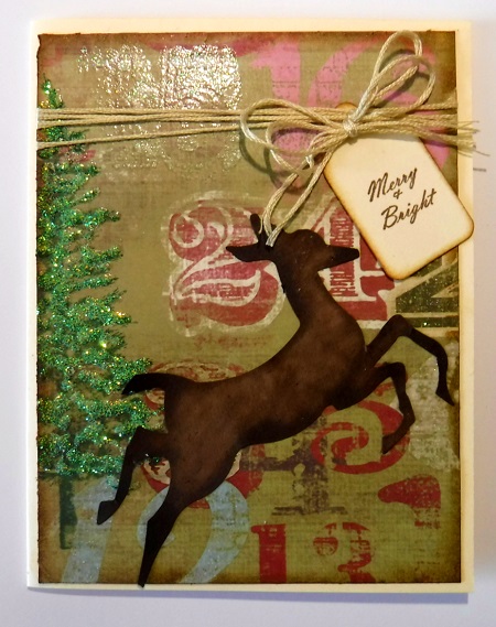 I love this card! The sparkly tree looks wonderful against that antiqued background. The deer is a wonderful die-cut; I like the way you inked him. Is that raffia? It's adds the perfect touch. TFS. Daria