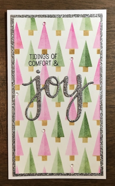 This one shows the technique she shared to use masking to get two-toned shapes. I used Tim Holtz Shifter Tree stencil.