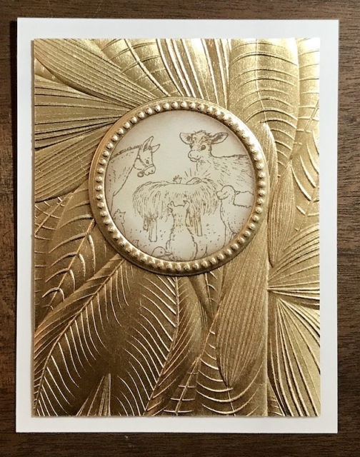 From the moment I saw this "leaves" embossing folder (Jan sent me a card using it) I knew I would like to use it with a nativity scene, as it looks like palm fronds to me.