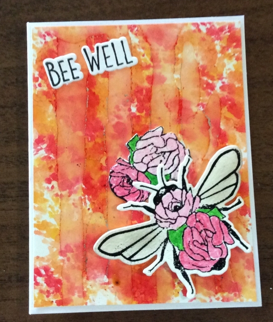 Your bright and cheerful background is perfect for this big bee stamp. I love the pink against the orange.