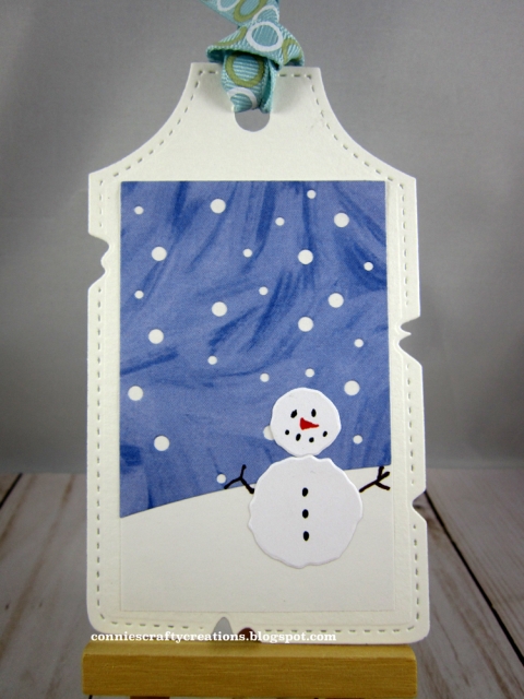 This is such a cool tag. I love the shape of the tag and the little bits taken out of the sides. Cute snowman too.
