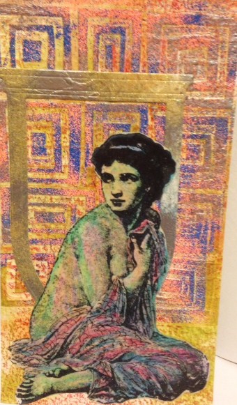 The lady stamp is a fave from my stash. She came from Hampton (then) Diffusions line. The embossed BG is a Cuttlebug folder (one of my early buys).