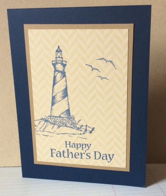 I stamped Hero Arts Tweed background with Soft Sand ink onto Gina K Sandy Beach colored cardstock. I then stamped the lighthouse, birds and sentiment (Gina K By the Sea stamp set) with Hero Arts Navy ink.