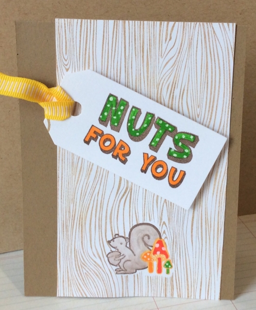I masked the toadstools and then stamped the squirrel. Then masked over both of them to put the background down.