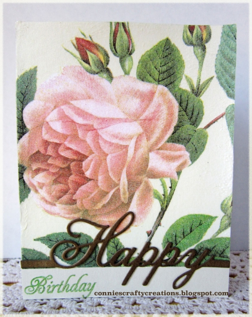 Pretty card Connie! I like you die cut sentiments! I have always used plastic wrap for adhering napkins to cards...guess that's another "oldie" technique now LOL! TFS!
