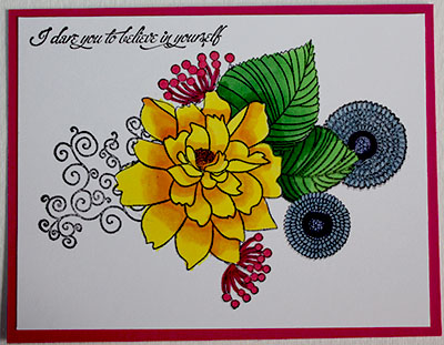 I'm back with my Flourished Floral image from Technique Junkies. This time I coloured up 20 of these, half in red and half in yellow. I'm giving them to my sister as part of her Christmas present and the other half are being sold. I have a custom order for 12 cards, 6 of these and 6 assorted.