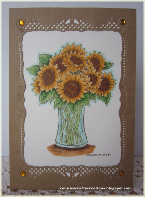Northwoods -- Sunflower in glass vase stamp colored w/markers