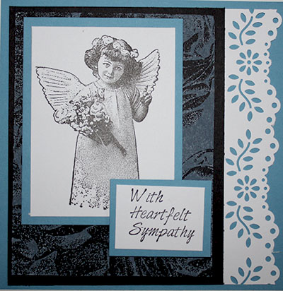 Sympathy cards are hard to make so I CASED one of my own cards I made a couple of years ago with a coloured image from Twisted Papers. I thought this angel would work perfectly.