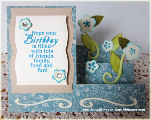 I do like these step cards and how it allows you to use the smaller die cuts for the image and more die cuts on the side.