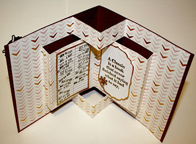 Following a tutorial from SCS http://www.splitcoaststampers.com/resources/tutorials/popupbookcard/ . I made my own book card using the new book stamps from Technique Junkies.