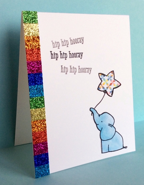 The rainbow was created with different colors of glitter ribbon and the stamp set is Avery Elle.