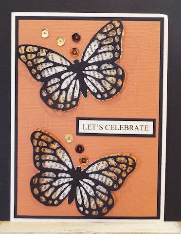 I love the newsprint background coupled with the intricate black butterfly and the way you inked it. Beautiful card. TFS. Daria