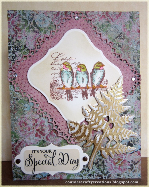 Someone will certainly feel special when they receive this card! I love the way you colored the birds and the gold/silver embossed fern is beautiful!