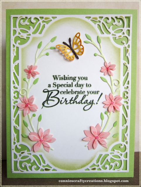 Very elegant. Your flowers are lovely. The sponging really adds a nice touch.