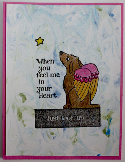 Awww. Sorry for you and your mom's loss. The shaving cream makes a perfect, ethereal look to your card. Such a cute stamp too!