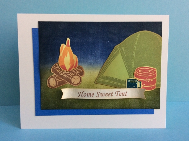 Supplies: Stampin Up Roughing It stamp set, Sentiment stamp from I Brake For Stamps, Colorbox Fluid Chalk inks Olive Pastel, Chestnut Roan, Warm Red, Tangerine, Yellow Ochre, Versafine Majestic Blue ink, Distress ink Tea Dye, Wild Honey, Chipped Sapphire, Black Soot and Peeled Paint