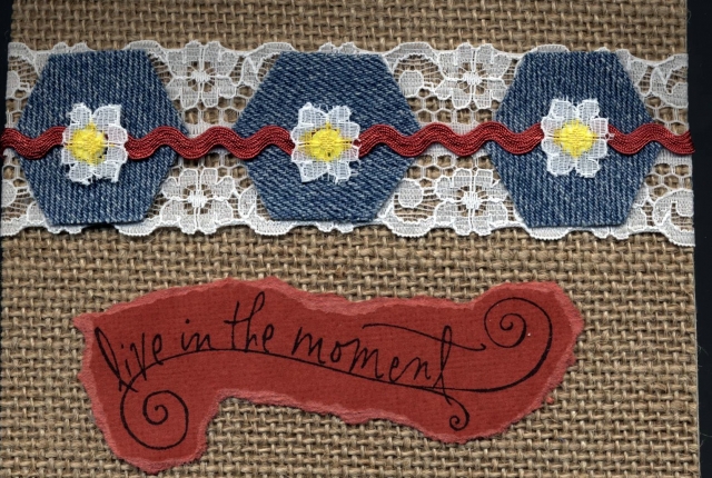 This is wonderful with the denim and burlap. When I first looked I thought the sentiment was the back side of a rubber stamp that you had stamped on. LOL. Thank you for sharing.