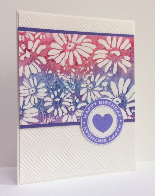 The Gina K sentiment stamp also had not been used yet. I used Gina K wild wisteria ink and a Darice embossing folder.
