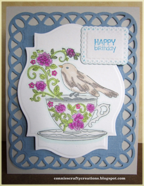 Garden Party stamp by Jennifer Ellory in Cardmaking and Papercraft Magazine, colored w/markers